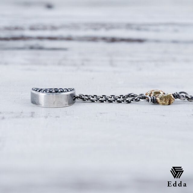 チェーンの左右に隕石をイメージした真鍮をはめ込み、カラーでもアクセントを。